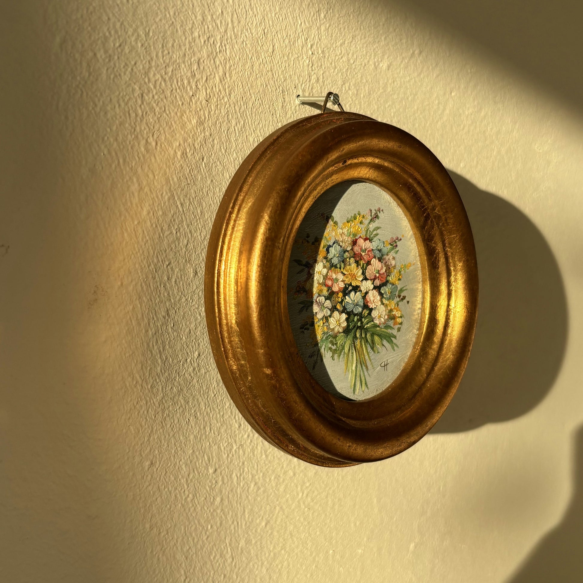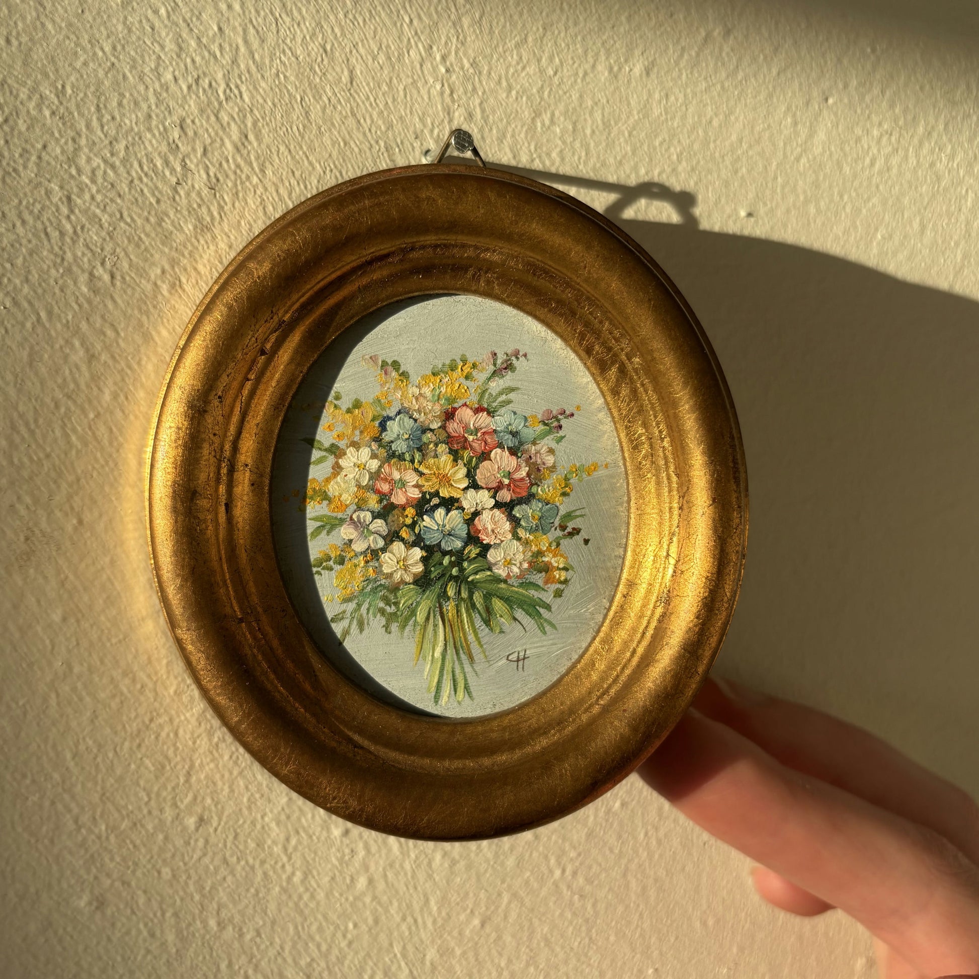 Fine Flowery Still Life Oil Painting "Flower Bouquet" Marvelous Small Artwork