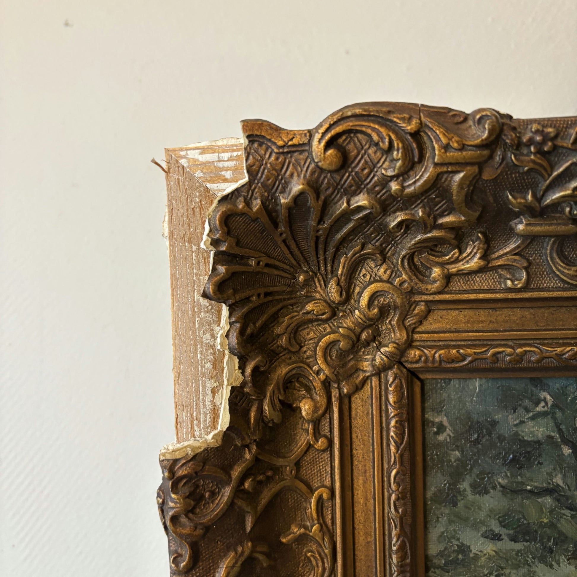 This is an authentic, hand-painted, original oil painting, presumably from the 19th Century. The artwork depicts a peaceful rural scene with rustic thatched-roof cottages nestled among tall trees, rendered with expressive brushwork that adds rich texture to the surface. Visible in the photos, the detail and depth of color create a truly immersive atmosphere, capturing the serene character of country life. As a unique, one-of-a-kind piece, this painting offers collectors and enthusiasts an opportunity to own a genuine example of historical fine art.